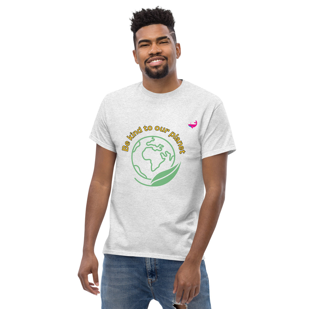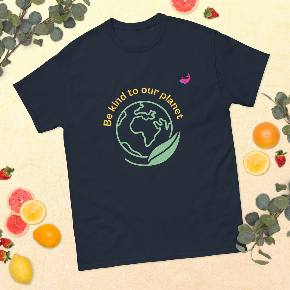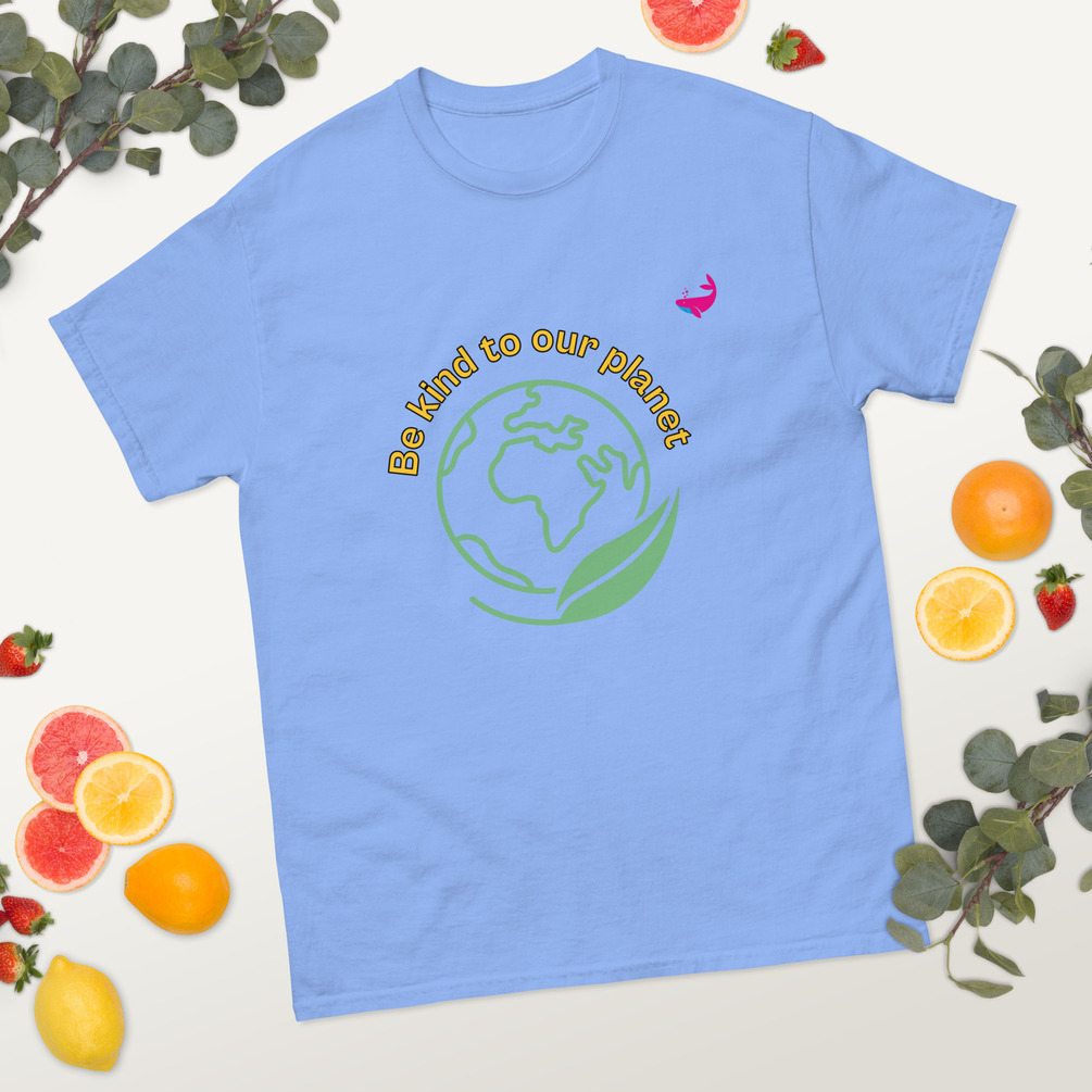 Made from high-quality materials and designed for both comfort and style, this tee is the perfect addition to any wardrobe. Whether you're out running errands, hiking in the great outdoors, or just relaxing at home, you'll feel great and look even better in your "Be Kind to Our Planet" T-shirt.
